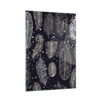Glasbild - Bild auf glas - Weiße Federn auf schwarzem Hintergrund mit subtilen Details - 50x70cm - Gefiederte Spitze - Moderne Wanddekoration für Wohnzimmer und Schlafzimmer ARTTOR