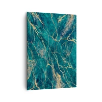 Glasbild - Bild auf glas - Marmorierter Stein mit goldenen Adern, blaugrünen und grünen Farbtönen - 50x70cm - Goldmine - Moderne Wanddekoration für Wohnzimmer und Schlafzimmer ARTTOR