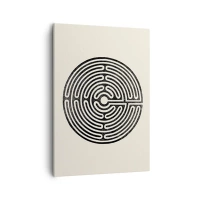 Bild auf Leinwand - Leinwandbild - Schwarz-weißes kreisförmiges Labyrinth auf hellem Hintergrund - 50x70cm - Geheimnisvolle Ordnung - Moderne Wanddekoration für Wohnzimmer und Schlafzimmer ARTTOR