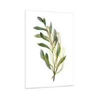 Glasbild - Bild auf glas - Grüner Zweig mit Blättern auf weißem Hintergrund - 70x100cm - Alles was gut ist - Moderne Wanddekoration für Wohnzimmer und Schlafzimmer ARTTOR