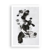 Glasbild - Bild auf glas - Abstrakte Komposition aus schwarzen Flecken auf weißem Hintergrund - 70x100cm - Obwohl das Wahnsinn ist, steckt darin eine Methode? - Moderne Wanddekoration für Wohnzimmer und Schlafzimmer ARTTOR