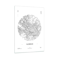 Glasbild - Bild auf glas - Florenz in Form einer stilisierten Karte mit einem Straßennetz - 50x70cm - Anatomie von Florenz - Moderne Wanddekoration für Wohnzimmer und Schlafzimmer ARTTOR