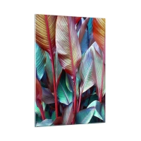 Glasbild - Bild auf glas - Ein buntes Blätterdickicht in Rot-, Grün- und Lilatönen - 50x70cm - Buntes Dickicht - Moderne Wanddekoration für Wohnzimmer und Schlafzimmer ARTTOR