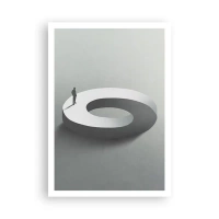 Glasbild - Bild auf glas - Ein Mann auf einer grauen, abstrakten Struktur - 70x100cm - Und wie soll man davon klug werden - Moderne Wanddekoration für Wohnzimmer und Schlafzimmer ARTTOR