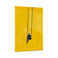 Glasbild - Bild auf glas - Eine Person auf einer Schaukel vor einem intensiv gelben Hintergrund - 80x120cm - Tag wie jeder andere - Moderne Wanddekoration für Wohnzimmer und Schlafzimmer ARTTOR