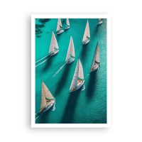 Glasbild - Bild auf glas - Yachten auf türkisfarbenem Wasser in dynamischer Bewegung - 70x100cm - Im Wettbewerb mit dem Wind - Moderne Wanddekoration für Wohnzimmer und Schlafzimmer ARTTOR