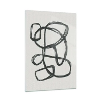 Glasbild - Bild auf glas - Schwarze Schleifen und Linien bilden eine abstrakte Komposition auf weißem Hintergrund. - 50x70cm - Schleifenabstraktion - Moderne Wanddekoration für Wohnzimmer und Schlafzimmer ARTTOR