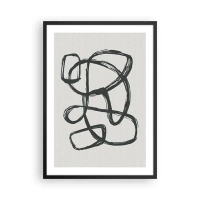 Poster in einem schwarzem Rahmen - Abstrakte schwarze Linie auf hellem Hintergrund - 50x70cm - Schleifenabstraktion - Moderne Wanddekoration für Wohnzimmer und Schlafzimmer ARTTOR