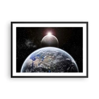 Poster in einem schwarzem Rahmen - Weltraumlandschaft - Sonnenaufgang - 91x61 cm