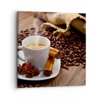 Wanduhr - Glasuhr - Eine Tasse Kaffee mit Zimt und Anis auf einem Hintergrund aus Kaffeebohnen - 30x30cm - Würziger Geschmack und Aroma - Moderne Wanddekoration für Wohnzimmer und Schlafzimmer ARTTOR