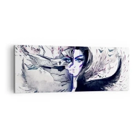 Bild auf Leinwand - Leinwandbild - Abstraktes Gesicht mit kontrastierenden Elementen und einem Flügelmotiv - 140x50cm - Dämonisch und schön - Moderne Wanddekoration für Wohnzimmer und Schlafzimmer ARTTOR