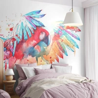 Fototapete Standard Eco - Ein farbenfroher Papagei im künstlerischen Aquarellstil - 100x70cm - Bunte Papageien - Moderne Wanddekoration für Wohnzimmer und Schlafzimmer ARTTOR