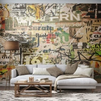 Fototapete Standard Eco - Eine Collage aus beschädigten Plakaten und Graffiti. - 100x70cm - Ach, es passiert... - Moderne Wanddekoration für Wohnzimmer und Schlafzimmer ARTTOR