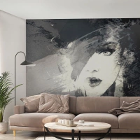 Fototapete Premium Sand - Hinter einem grauen Schleier - Das Gesicht einer Frau, Schwarz und weiß, Augen - 450x315 cm