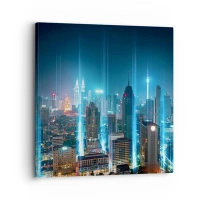 Wanduhr - Glasuhr - Eine moderne Stadt bei Nacht mit futuristischen Lichtakzenten. - 30x30cm - Auf Berliner Art gegen den Himmel - Moderne Wanddekoration für Wohnzimmer und Schlafzimmer ARTTOR