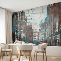 Fototapete Premium Sand - Abstraktes Stadtpanorama in Blau- und Brauntönen - 100x70cm - Ein abgenutzter Stadtwanderweg - Moderne Wanddekoration für Wohnzimmer und Schlafzimmer ARTTOR