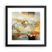Poster in einem schwarzem Rahmen - Im Galopp durch das Licht - 30x30 cm