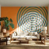 Fototapete Standard Eco - Geometrische konzentrische Kreise auf orangefarbenem Hintergrund - 100x70cm - Abstrakte kreisförmige Variation - Moderne Wanddekoration für Wohnzimmer und Schlafzimmer ARTTOR