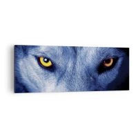 Bild auf Leinwand - Leinwandbild - Nahaufnahme des intensiven Blicks eines Wolfes vor dunklem Hintergrund - 140x50cm - Faszinierender Blick - Moderne Wanddekoration für Wohnzimmer und Schlafzimmer ARTTOR