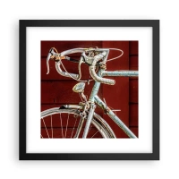 Wanduhr - Glasuhr - Nahaufnahme eines Retro-Fahrrads vor einem roten Brett - 30x30cm - Geschaffen um zu siegen - Moderne Wanddekoration für Wohnzimmer, Küche und Schlafzimmer ARTTOR