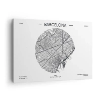 Bild auf Leinwand - Leinwandbild - Eine Karte von Barcelona im minimalistischen Schwarz-Weiß-Stil - 70x50cm - Anatomie von Barcelona - Moderne Wanddekoration für Wohnzimmer und Schlafzimmer ARTTOR