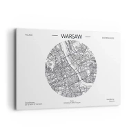 Bild auf Leinwand - Leinwandbild - Eine Karte von Warschau im minimalistischen Stil - 120x80cm - Anatomie von Warschau - Moderne Wanddekoration für Wohnzimmer und Schlafzimmer ARTTOR