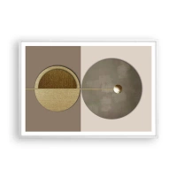 Poster in einem schwarzem Rahmen - Abstrakte Kreise in Gold- und Beigetönen - 100x70cm - Perfekte Balance - Moderne Wanddekoration für Wohnzimmer und Schlafzimmer ARTTOR