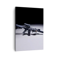 Bild auf Leinwand - Leinwandbild - Ein modernes Gewehr in Schwarz auf dunklem Hintergrund - 50x70cm - dunkler Ritter - Moderne Wanddekoration für Wohnzimmer und Schlafzimmer ARTTOR