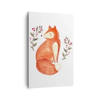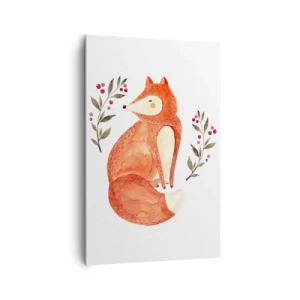 Bild auf Leinwand - Leinwandbild - Ein Aquarellfuchs, umgeben von Zweigen mit Beeren - 80x120cm - Kleine Rothaarige - Moderne Wanddekoration für Wohnzimmer und Schlafzimmer ARTTOR
