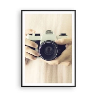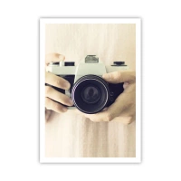 Bild auf Leinwand - Leinwandbild - Retro-Kamera in den Händen vor hellem Hintergrund gehalten - 70x100cm - Um mehr zu sehen ... - Moderne Wanddekoration für Wohnzimmer und Schlafzimmer ARTTOR
