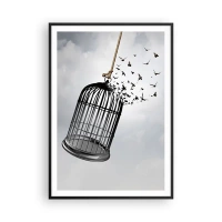 Bild auf Leinwand - Leinwandbild - Vögel fliegen aus einem Käfig gegen den Himmel - 70x100cm - Glaube ... Hoffnung ... Freiheit! - Moderne Wanddekoration für Wohnzimmer und Schlafzimmer ARTTOR