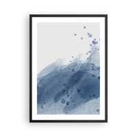 Poster in einem schwarzem Rahmen - Aquarellwellen in Blautönen - 50x70cm - Blauer Tüll - Moderne Wanddekoration für Wohnzimmer und Schlafzimmer ARTTOR