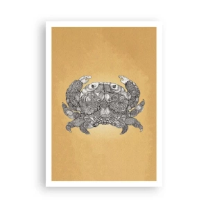 Bild auf Leinwand - Leinwandbild - Dekorative Zeichnung einer Krabbe auf goldenem Hintergrund - 70x100cm - Geschichten von Mr. Krabs - Moderne Wanddekoration für Wohnzimmer und Schlafzimmer ARTTOR