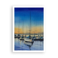 Bild auf Leinwand - Leinwandbild - Yachthafen bei Sonnenuntergang mit Spiegelungen auf dem Wasser - 70x100cm - Ende eines guten Tages - Moderne Wanddekoration für Wohnzimmer und Schlafzimmer ARTTOR