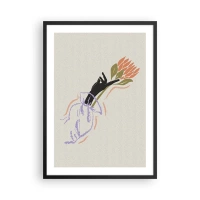 Poster in einem schwarzem Rahmen - Abstrakte Zeichnung einer Hand, die einen Blumenstrauß hält - 50x70cm - Schwesterliche Berührung - Moderne Wanddekoration für Wohnzimmer und Schlafzimmer ARTTOR