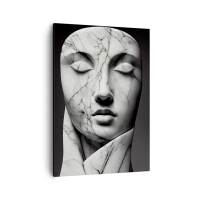 Poster - Marmorskulptur Gesicht mit geschlossenen Augen auf schwarzem Hintergrund - 50x70cm - Marmorformen - Moderne Wanddekoration für Wohnzimmer und Schlafzimmer ARTTOR