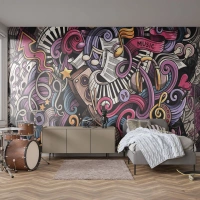 Maßgeschneiderte Fototapete Standard Eco - Komplizierte Melodie - Musik, Wandgemälde, Graffiti