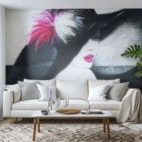 Fototapete Standard Eco - Immer ein Geheimnis - Frau, In, A, Hat, Das Gesicht einer Frau, rote Lippen - 300x210 cm