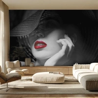 Fototapete Standard Eco - Eine Studie in Scharlachrot - Frau, rote Lippen, Mode - 200x140 cm