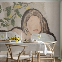 Fototapete Standard Eco - Südländische Schönheit - Frau, Zitronen, Minimalismus - 450x315 cm