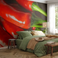 Fototapete Premium Canvas - Saftig, glänzend, glatt - Gastronomie, Pfeffer, Gemüse - 250x175 cm