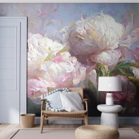 Fototapete Premium Sand - Strauß voller Leben - Blumen, Pfingstrosen, Klassizismus - 350x256 cm