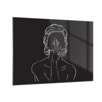 Glasbild - Bild auf glas - Eine minimalistische Silhouette einer Frau, die eine Geste des Schweigens macht. - 70x50cm - Schönheit erblüht in der Stille - Moderne Wanddekoration für Wohnzimmer und Schlafzimmer ARTTOR