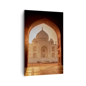 Bild auf Leinwand - Leinwandbild - Taj Mahal im Sonnenlicht vom Torbogen aus gesehen - 80x120cm - Denkmal der überirdischen Liebe - Moderne Wanddekoration für Wohnzimmer und Schlafzimmer ARTTOR