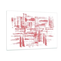 Glasbild - Bild auf glas - Eine abstrakte Komposition in Rot, die an die Umrisse städtischer Architektur erinnert. - 120x80cm - Die rote Stadt - Moderne Wanddekoration für Wohnzimmer und Schlafzimmer ARTTOR