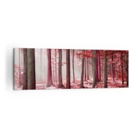 Bild auf Leinwand - Leinwandbild - Ein atemberaubender Wald in roten Farbtönen mit Lichtstrahlen, die durch die Bäume dringen - 160x50cm - Rot ist genauso schön - Moderne Wanddekoration für Wohnzimmer und Schlafzimmer ARTTOR