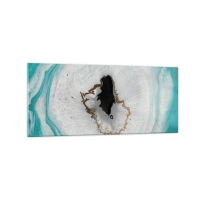 Glasbild - Bild auf glas - Abstraktes Geodenmotiv in Türkis-, Weiß- und Goldtönen - 120x50cm - Nach Innen eindringen - Moderne Wanddekoration für Wohnzimmer und Schlafzimmer ARTTOR