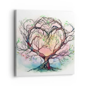 Bild auf Leinwand - Leinwandbild - Ein herzförmiger Baum vor einem Hintergrund aus zarten Pastellfarben - 50x70cm - Gemeinsam gegen die Stürme - Moderne Wanddekoration für Wohnzimmer und Schlafzimmer ARTTOR