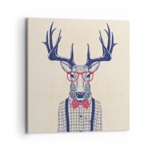 Bild auf Leinwand - Leinwandbild - Stilisierte Grafik eines Hirsches mit Brille und Fliege - 70x100cm - Eine lustige Extravaganz - Moderne Wanddekoration für Wohnzimmer und Schlafzimmer ARTTOR