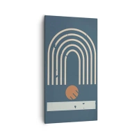 Bild auf Leinwand - Leinwandbild - Geometrisches Muster in Marineblau-, Beige- und Orangetönen auf dunklem Hintergrund - 80x120cm - Geometrie auf dem Granatapfel - Moderne Wanddekoration für Wohnzimmer und Schlafzimmer ARTTOR